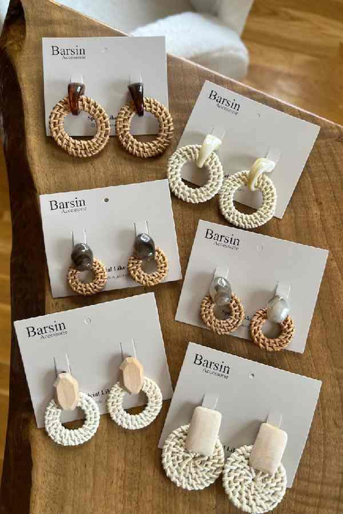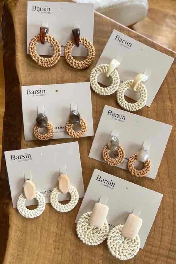 جنس محصول: حصیری_سنگی،پشت گوشواره تمامن پلاستیکی و ضد حساسیت می باشد