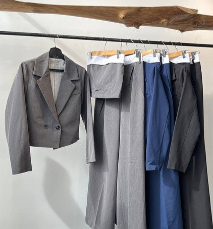ست سهتیکه زنانه (کت، شلوار و کراپتاپ) با پارچه باکیفیت و استرچدارمی باشد