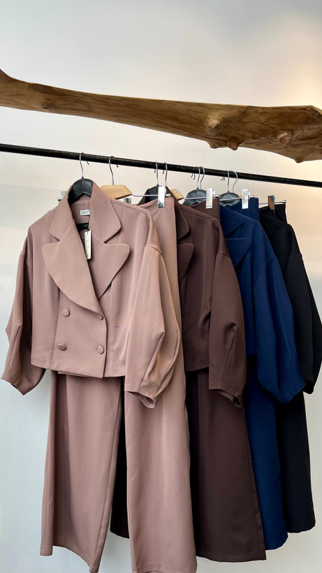 مشخصات: قد کت حدود 50 دور سینه 98 دور بازو 52 قد شلوار 105 دور باسن 120 دور کمر 72-98 دور ران 70