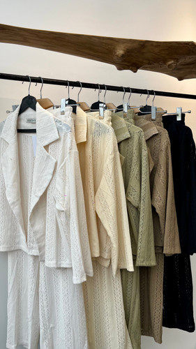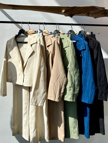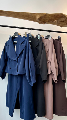 ست کراپ کت و کراپ و شلوار زنانه طرح کایلا جنس کرپ